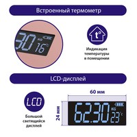 Функциональные особенности расчет доли воды, расчет доли жировой ткани, расчет доли мышечной ткани, расчет доли костной ткани, расчет ИМТ (BMI), индикация температуры помещения, индикация заряда батареи