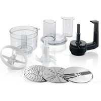 Комплектация двусторонний диск-терка (крупная/мелкая), двусторонний диск-шиновка (крупная/мелкая), терка для сыра твердых сортов, шоколада, нож-крыльчатка