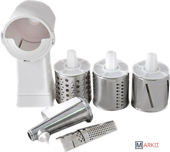 | Комплектация | - Овощерезка комплектуется тремя типами насадок: для крупного и мелкого шинкования и для нарезки ломтиками;- Соковыжималка предназначена для приготовления соков, пюреобразных масс. |