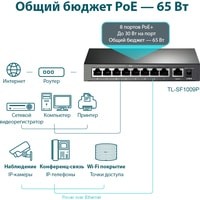 Неуправляемый коммутатор TP-Link TL-SF1009P Код: 130896