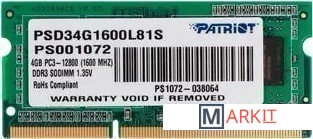 Markit » Оперативная память » Оперативная память Patriot Memory for Ultrabook 4GB DDR3 SO-DIMM PC3-12800 (PSD34G1600L81S)