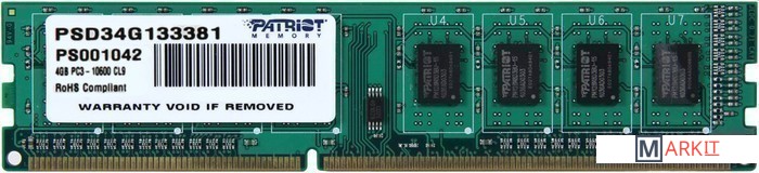 Markit » Оперативная память » Оперативная память Patriot Signature 4GB DDR3 PC3-10600 (PSD34G133381)