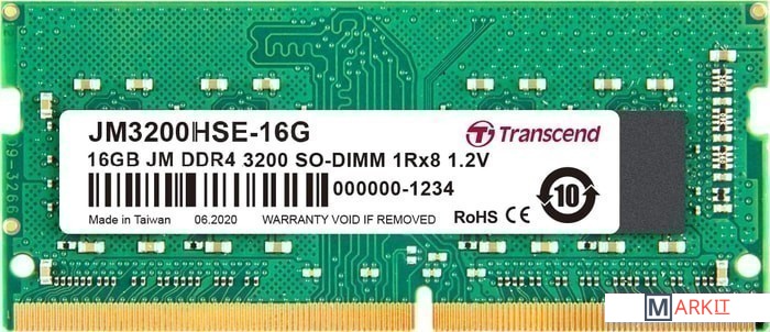Markit » Оперативная память » Оперативная память Transcend JetRam 32GB DDR4 SODIMM PC4-25600 JM3200HSE-32G