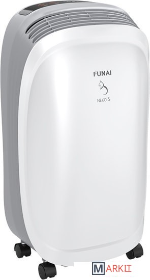 Базовая модель NEKO S имеет производительность по осушению до 10 литров в день и оптимальный набор настроек, что позволяет эффективно использовать дома, на даче или в гараже. Все модели осушителей FUNAI оснащены традиционными функциями: таймером 1–24 часа, системой настройки скорости обдува, интеллектуальным управлением уровнем влажности воздуха.Для безопасной эксплуатации на панель управления осушителей добавлена индикация уровня воды в баке и режима разморозки, который автоматически включается при падении температуры окружающего воздуха ниже +5 °C, останавливая работу компрессора. Для удобства перемещения модели оснащены колесиками.