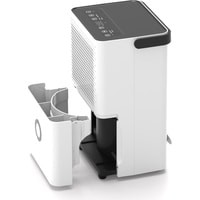 Полупромышленная модель предназначена для использования в бытовых и коммерческих помещениях площадью до 50 м². Благодаря мощному компрессору и высокой производительности 40 л/сутки прибор ускоряет высыхание строительных смесей, а встроенная в него помпа позволяет поднимать конденсат из подвальных и полуподвальных помещений на высоту до 5 метров.Элегантный функциональный прибор не создает много шума и имеет 3 режима работы:осушение до целевого уровня влажности;непрерывное осушение;режим AUTO.Кроме того, вы можете использовать таймер, который автоматически отключит прибор по истечении заданного времени — от 1 до 24 часов. Во время работы осушителя можно выбрать высокую или низкую скорость работы вентилятора, чтобы оптимизировать уровень шума. В осушителе установлен сменный угольный фильтр, который эффективно поглощает неприятные запахи и вредные химические соединения, а также табачный дым, угарный газ и формальдегиды. Кроме того, прибор оснащен моющимся съемным нейлоновым фильтром для очистки воздуха от взвешенных частиц и защиты внутренних компонентов.Специальный режим внутренней сушки необходимо включать перед длительным перерывом в работе прибора и для профилактики образования плесени внутри осушителя. Время выполнения данной процедуры около 1 часа. При необходимости ее выполнение можно остановить и включить необходимый режим осушения воздуха в любой момент.Параметры работы удобно отслеживать с помощью LED-дисплея и индикаторов на панели управления: вы всегда будете знать, насколько бак заполнен конденсатом, и текущий режим работы. Благодаря встроенному датчику уровня воды осушитель самостоятельно отключится, как только емкость для сбора конденсата заполнится. Индикатор наполненности бака конденсатом будет отображаться на дисплее. После слива конденсата индикатор гаснет, и осушитель автоматически возобновляет текущую программу. На лицевой панели осушителя расположен цветовой индикатор, отображающий текущий уровень влажности в помещении: красный цвет – высокий уровень – более 70%; зеленый цвет – средний уровень – от 70% до 50%; синий цвет – низкий уровень – менее 50%.Прибор способен эффективно работать даже в помещениях с максимальным уровнем влажности, так как оснащен функцией непрерывного осушения. Два способа сбора конденсата: в бак, а также в специальное дренажное отверстие, либо емкость при помощи шланга, делают осушитель максимально удобным в использовании. Благодаря складной ручке и шасси прибор легко перемещать, если возникает такая необходимость.