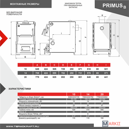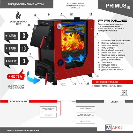 Markit » Отопительные котлы » Отопительный котел Термокрафт Primus B 10 кВт (без варочной повехности)