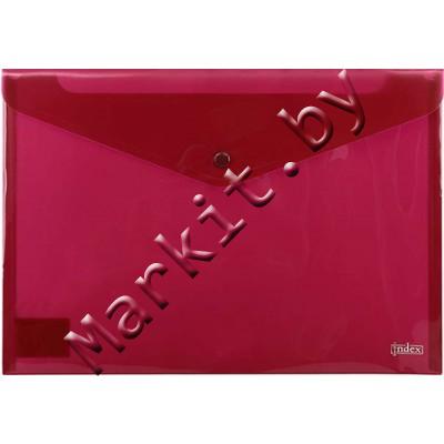 Папка-конверт пластиковая на кнопке Index, толщина пластика 0,18 мм, прозрачная красная Код: 32890