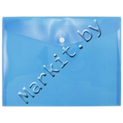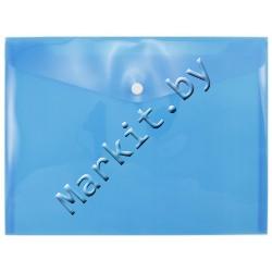 Папка-конверт пластиковая на кнопке inФормат А5+, 280 x 210 мм, толщина пластика 0,18 мм, прозрачная синяя Код: 32896