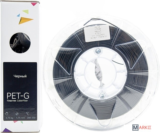 Markit » Расходные материалы для 3д принтера » Пластик CyberFiber PETG 1.75 мм 750 г (черный)