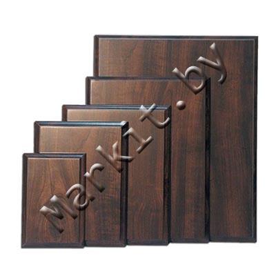| Примечание | Деревянные подложки (плакетки) являются основой для некоторых видов табличек, наградных дипломов и прочей поздравительной продукции. Подложки изготавливаются методом ламинации и в отличии от натурального дерева, они не коробятся со временем. На обратной стороне предусмотрены отверстия для горизонтального и вертикального размещения. |
