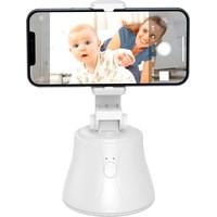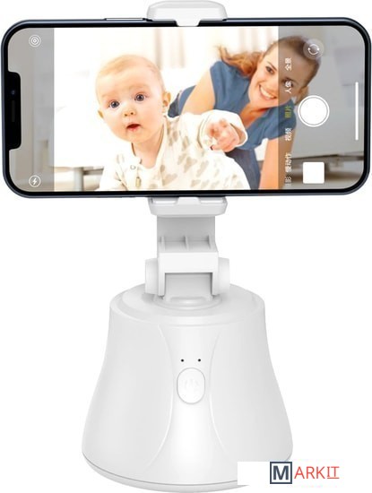 Держатель для смартфонов с диапазоном зажима устройств от 56 до 83 мм. Поддержка устройств на базе Android 8.1+/iOS 12.4+.Для питания держателя используется три батарейки стандарта AA (в комплект поставки не входят).Главной особенностью устройства является наличие функции автоматического снимка и потоковой передачи видео в реальном времени.Поддерживаемые сервисы: Facebook, lnstagra, Youtube, Tiktok, Twitter и Snapchat.Кроме того, данный держатель оснащен механизмом горизонтального вращения на 360° и продольного поворота вверх или вниз на 37°. Устройство можно применять как в настольном варианте, так и использовать в качестве головы-держателя с резьбовым креплением 1/4".