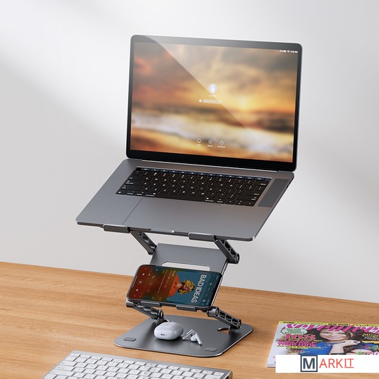 MAICONG LS515-3 - это универсальная подставка под планшет или ноутбук с диагональю до 17,3 дюймов, произведенная из высококачественного алюминия, имеет прочную конструкцию, защищает с помощью силиконового покрытия, поднимает на высоту от 5 до 25 см, выдерживает вес до 20 кг.