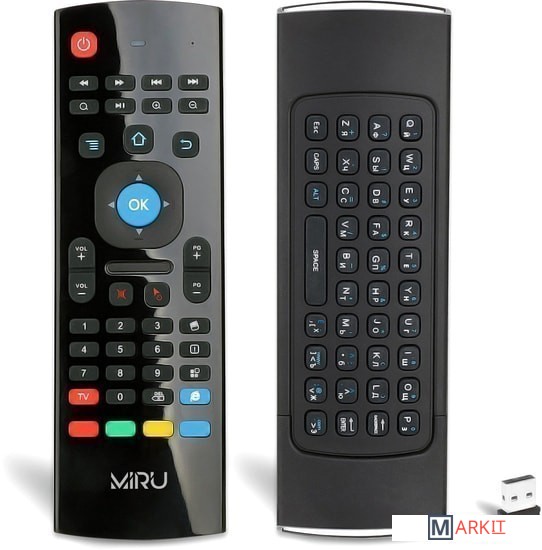 Пульт ДУ MIRU MX3 - беспроводная аэромышь со встроенным гироскопом и клавиатурой на задней панели, на платформе Android. Может выполнять функции универсального пульта управления, компьютерной мыши и игровых контроллеров движений. Микроприемник совместим с: компьютерами, ноутбуками, проекторами, ТВ приставками, мультимедийными центрами и пр. Данное оборудование позволяет управлять вашими устройствами на расстоянии посредством сгибания кисти руки. На экране это отображается курсором. Легкость и удобство использования аэромыши полностью заменит вам стационарную компьютерную мышь и клавиатуру, пульт управления, а также позволит управлять ей в любом комфортном для вас положении. Поддержка операционных систем: Android (AOSP), AndroidTV, Windows, Linux, MacOS, Tizen OS (частично), WebOS (частично). Совместимые модели телевизоров: Xiaomi, KIVI, TCL, Thomson, JVC, Harper, Sony, Philips, Toshiba, LG, Samsung