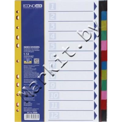 Разделители для регистраторов пластиковые Economix, 12 л., индексы по цветам (без нумерации) Код: 32584