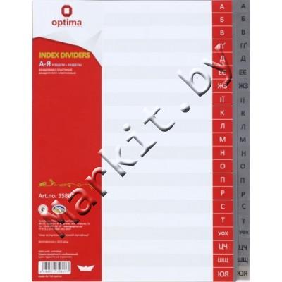 Разделители для регистраторов пластиковые Optima, 21 л., индексы по алфавиту (украинский) (А-Я) Код: 32615