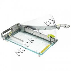 | Примечание | Сабельный резак ClassicCut CL420 обеспечивает максимальную точность резки с помощью встроенного красного лазера. Красный лазерный луч покажет на бумаге, где опустится лезвие ножа. Луч работает от 2-х батареек ААА, которые поставляются в комплекте. Основание резака сделано из прочного прозрачного акрила, на который нанесена разметка форматов бумаги и метрическая линейка. ClassicCut CL420 разрезает до 25 листов за один раз, А3 формат. Прижим для бумаги надежно удержит документы во время резки. Специальная ручка для переноса резака. Акриловый экран и фиксатор лезвия, размещенный на ручке ножа, обеспечивают безопасность при использовании резака. Регулируемый упор для бумаги поможет выровнять листы с левой стороны. |
