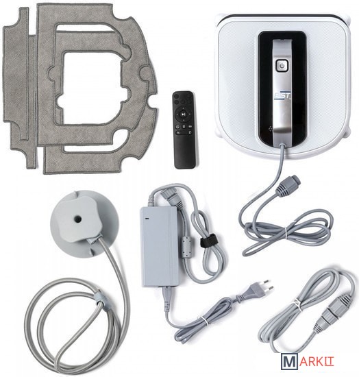 Робот для чистки стекла Bist Win A100: 1 шт.Пульт ДУ: 1 шт.Адаптер питания: 1 шт.Удлинитель: 1 шт.Защитный блок и страховочный трос: 1 шт.Комплект чистящих салфеток: 2 шт.Руководство пользователя: 1 шт.