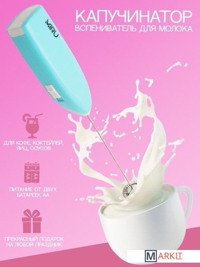 Капучинатор MIRU MILK FROTHER KA044 предназначен для взбивания молочной пены для кофе, шоколада, капучино, макиато и других кофейных напитков. Идеально подходит для молочных коктейлей, смешанных напитков, а также может использоваться для взбивания яиц и соусов. Рекомендуется взбивать молоко отдельно от кофе до появления кремовой пены, после чего совместить с кофейным напитком. Вставьте 2 элемента питания типа АА, соблюдая полярность, зафиксируйте крышку отсека для батарей. Для начала работы нажмите кнопку питания на корпусе и вспениватель молока начнет работать.После использования протрите капучинатор влажной тканью со слабым мыльным раствором, после чего протрите насухо. Не опускать в воду. Срок годности и хранения не ограничен при соблюдении условий хранения.Характеристики:- Размер: 33х22х205 мм.- Вес: 43 грамма.- Материал: пластик АBS + нержавеющая сталь.- Питание: 2 батарейки типа АА (не входит в комплект).