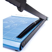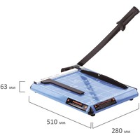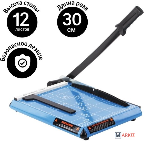 Сабельный резак для бумаги BRAUBERG «SABER» подходит для домашнего и офисного применения. Позволяет одновременно разрезать до 12 бумажных листов формата А4.Оснащен безопасным лезвием, регулируемым упором и автоматическим прижимом для бумаг. Рукоятка анатомической формы препятствует соскальзыванию руки. Прочное металлическое основание. Удобная разметка рабочей поверхности и регулируемый упор позволяют точно наметить линию реза. Длина реза составляет 300 мм. Также имеются уголки для форматов А4, B5, А5, B6, B7. Резиновые ножки предотвращают скольжение по рабочей поверхности во время эксплуатации. Размер — 63х280х510 мм. Вес — 2.6 кг.