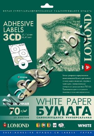 Самоклеящаяся бумага LOMOND (2101023) A4, 3 дел. для CD (d=114/41мм), 25 листов Код: 3568