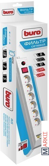 Markit » Стабилизаторы, сетевые фильтры, удлинители » Сетевой фильтр Buro BU-SP1.8-USB-2A-W