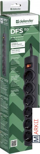 Markit » Стабилизаторы, сетевые фильтры, удлинители » Сетевой фильтр Defender 6 розеток, 3 м, черный (DFS 153)