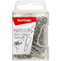 Markit » Канцтовары » Настольные принадлежности » Скрепки, кнопки, зажимы, булавки, резинки для банкнот » Скрепки Berlingo, 25 мм, 100 шт., треугольные с загнутым краем, никелированные