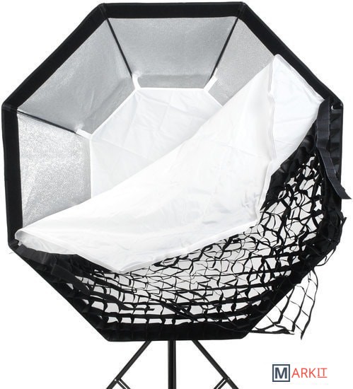 Софтбокс октобокс Godox SB-FW120 — световой модификатор для осветительных приборов с байонетом Bowens (байонетное кольцо сменное), предназначен для создания мягкого рассеянного освещения без резких теней и бликов. Размер октобокса 120 см. Отражающая поверхность — «серебро». Тканевые соты в комплекте.
