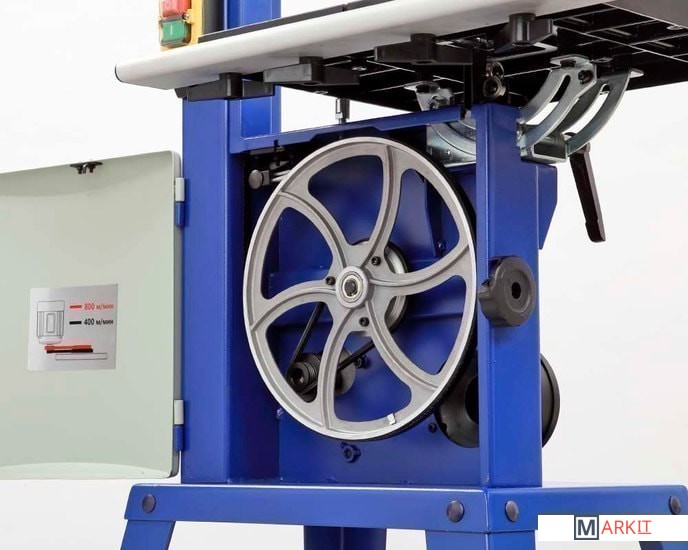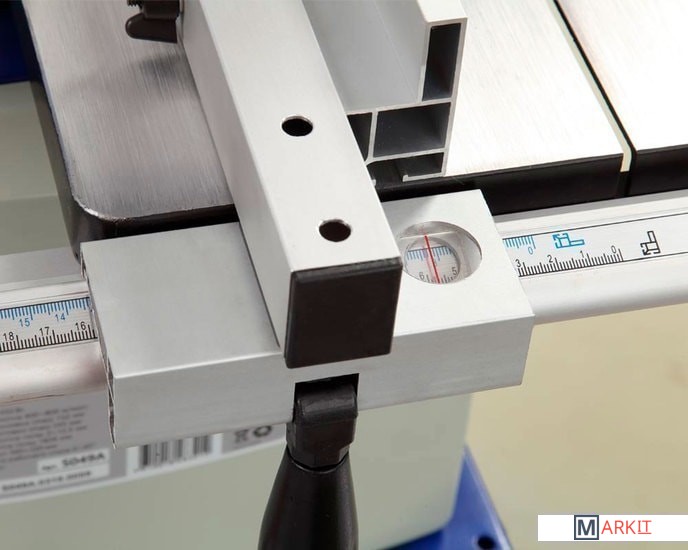 Мощность устройства составляет 450 Вт.Рабочий стол, как и параллельный упор изготовлен из алюминия.Максимальная габарит обрабатываемой заготовки составляет Ш×В - 245×152 мм.Станок имеет две скорости пильного полотна: 1 - 400 м/мин., 2 - 800 м/мин.Для подключения вытяжной установки придусмотренно три патрубка диаметром - 49/74/99 мм.На рабочий стол устанавливаются параллельный и угловой упоры.