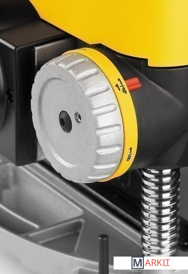 Комплект поставки - круглый переходник пылеотвода;- Т-образный ключ (расположен на верхней крышке станка);- поворотная рукоятка настройки глубины- шестигранный винт для поворотной рукоятки;- сменный комплект ножей.