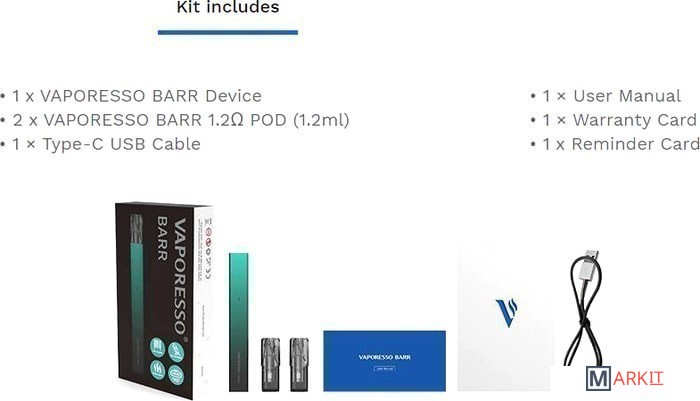 Markit » Электронные парогенераторы » Стартовый набор Vaporesso Barr Pod (черный)