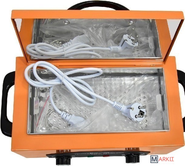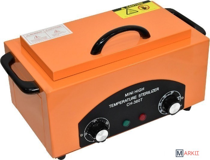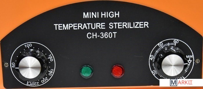 Внутренний блок термического стерилизатора изготовлен из нержавеющей стали. Внутри прибора есть специальный съемный контейнер для хранения и стерилизации инструментария.Объем камеры: 1.8 л.Размер камеры (мм): 250 x 120 x 60.Размер стерилизатора (мм): 310 x 140 x 180.Таймер: от 0 до 60 минут.Терморегулятор: от 0 до 220 °C.