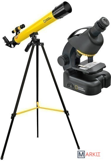 Набор Bresser National Geographic – это не только два оптических прибора, но и множество дополнительных аксессуаров для исследования космоса и микромира. Комплект станет отличным подарком школьнику или ребенку, интересующемуся наукой.Основные особенности:- Набор «2 в 1»: телескоп и микроскоп- Телескоп позволяет увидеть Луну и рассмотреть наземные объекты- Микроскоп позволяет изучать прозрачные образцы и готовые микропрепараты- В комплекте множество аксессуаров и набор для опытов с микроскопом- Специальный адаптер для фотографирования микромира на смартфонКомплектация:- Оптическая труба телескопа- Алюминиевая тренога- Лунный фильтр- Диагональное зеркало- Оптический искатель 6х25- Оборачивающий окуляр 1,5х- Окуляр 6 мм- Окуляр 12 мм- Микроскоп- Окуляр WF10x–WF16x- Объективы: 4х, 10х, 40х- Готовые микропрепараты- Предметные и покровные стекла- Адаптер для смартфона- Маленькая лупа с ручкой- Мерный стаканчик- Пипетка- Пинцет- Микротом- Коробочка для разведения артемии- Флакон с дрожжами- Флакон с артемией- Пустой флакон – 3 шт.- Батарейки типа АА – 2 шт.- Инструкция по эксплуатации и гарантийный талон