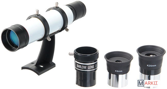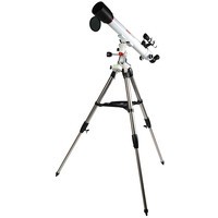 Просветленный ахроматический объектив с диаметром 70 мм, собирает в два раза больше света, чем 50 мм и позволяет наблюдать не только небесные, но и очень удаленные земные объекты. Картинка резкая, без окрашенности изображения по краю поля зрения. В этот телескоп вы сможете увидеть детали на дисках планет, кратеры Луны размером 5–6 км, многие туманности и звездные скопления (вплоть до 12 m звездной величины).Телескоп снабжен экваториальной монтировкой EQ8 без единой пластиковой детали с возможностью микрометрического наведения телескопа по обеим осям.PolarStar 700/70 EQ8 поставляется с алюминиевым штативом с возможностью регулировки высоты. Распорки для ножек служат не только для повышения устойчивости, но и в качестве подставки под полочку для аксессуаров (идет в комплекте). Сумка для переноски, в которую укладывается весь комплект, позволяет безопасно (для оптики и внешнего вида) транспортировать прибор для выездов на природу или при походах в гости.