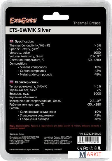 Markit » Системы охлаждения » Термопаста ExeGate ETS-6WMK Silver EX282348RUS (8 г.)