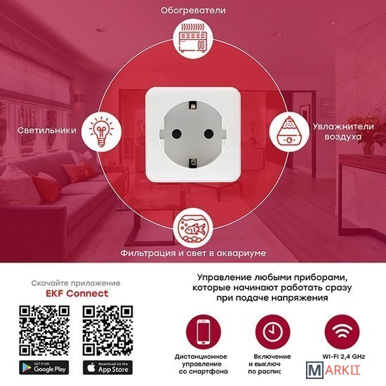 Markit » Умный дом » Умная розетка EKF Сonnect Wi-Fi (белый)