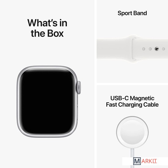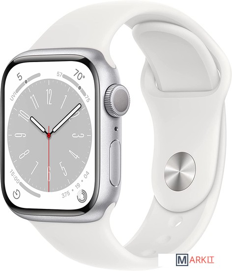Markit » Умные часы и браслеты » Умные часы Apple Watch Series 8 41 мм (алюминиевый корпус, серебристый/белый, спортивный силиконовый ремешок)