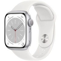 Умные часы Apple Watch Series 8 41 мм (алюминиевый корпус, серебристый/белый, спортивный силиконовый ремешок) Код: 511238