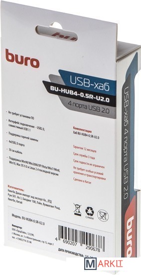 Markit » USB-хабы и док-станции » USB-хаб Buro BU-HUB4-0.5R-U2.0