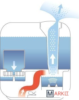 Вместительный бак для воды из прозрачного голубого пластика занимает значительную часть корпуса и подсвечивается мягким светом. В темное время суток прибор выполняет роль красивого ночника: создает атмосферу вашего дома в прямом и переносном смысле слова. Днем — стильный предмет интерьера, ночью — оригинальный светильник, и 24 часа в сутки — источник живительной влаги для комфортного пребывания в помещении. Эффективное увлажнение и красивый внешний вид — не удивительно, что U700 является флагманом в линейке ультразвуковых увлажнителей.