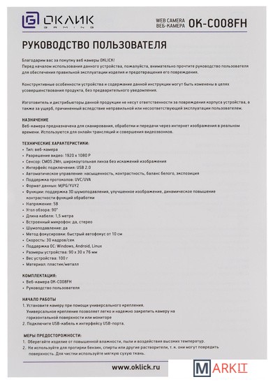 Markit » Веб-камеры » Веб-камера Oklick OK-C008FH
