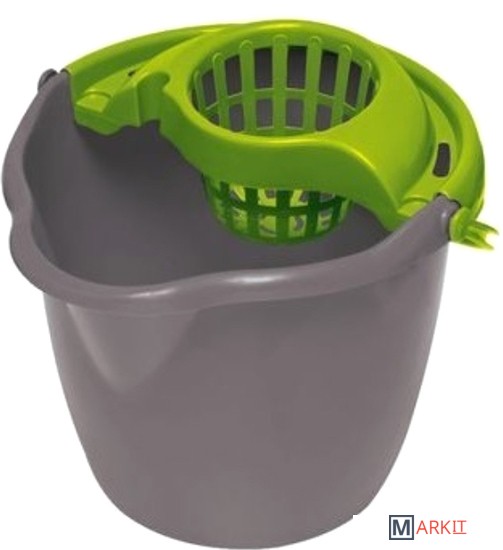 Ведро из высококачественного пластика с отжимом и носиком для слива. Ручка и отжим изготовлены из прочного пластика - прослужат долго. На дне ведра углубление для фиксации ведра во время слива воды. На отжиме имеется фиксатор для удержания МОПа в ведре.