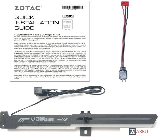 Комплект поставки RGB кабель 3-pin, держатель видеокарты