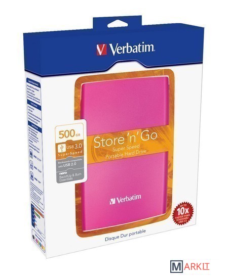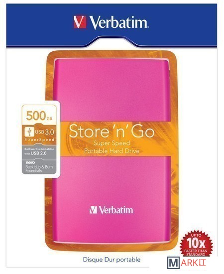 Markit » Внешние накопители (HDD и SSD) » Внешний накопитель Verbatim Store 'n' Go с USB 3.0 500GB (розовый) [53025]