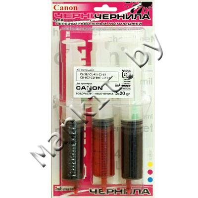 Дополнительная информация 3 x 20ml, водорастворимый трехцветный (tri- colour), для картриджей CANON CL 38/ 41/ 51/ 511/ 513