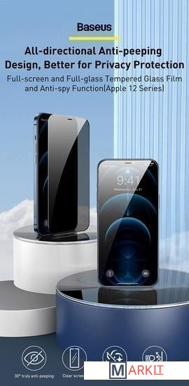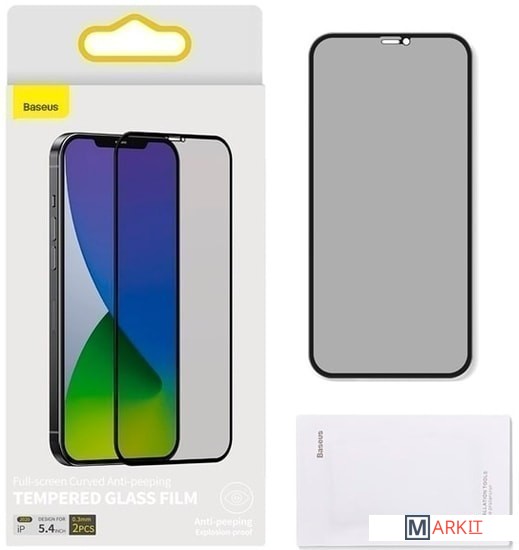 Markit » Защитные стекла и пленки » Защитное стекло Baseus Full-Screen Curved Anti-peeping Tempered для iPhone 12/12 Pro