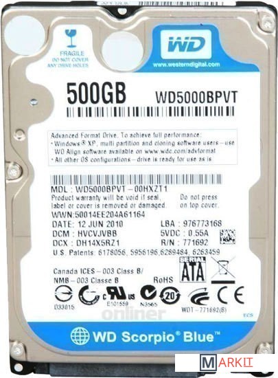 Markit » Жесткие диски » Жесткий диск WD Scorpio Blue 500 Гб (WD5000BPVT)